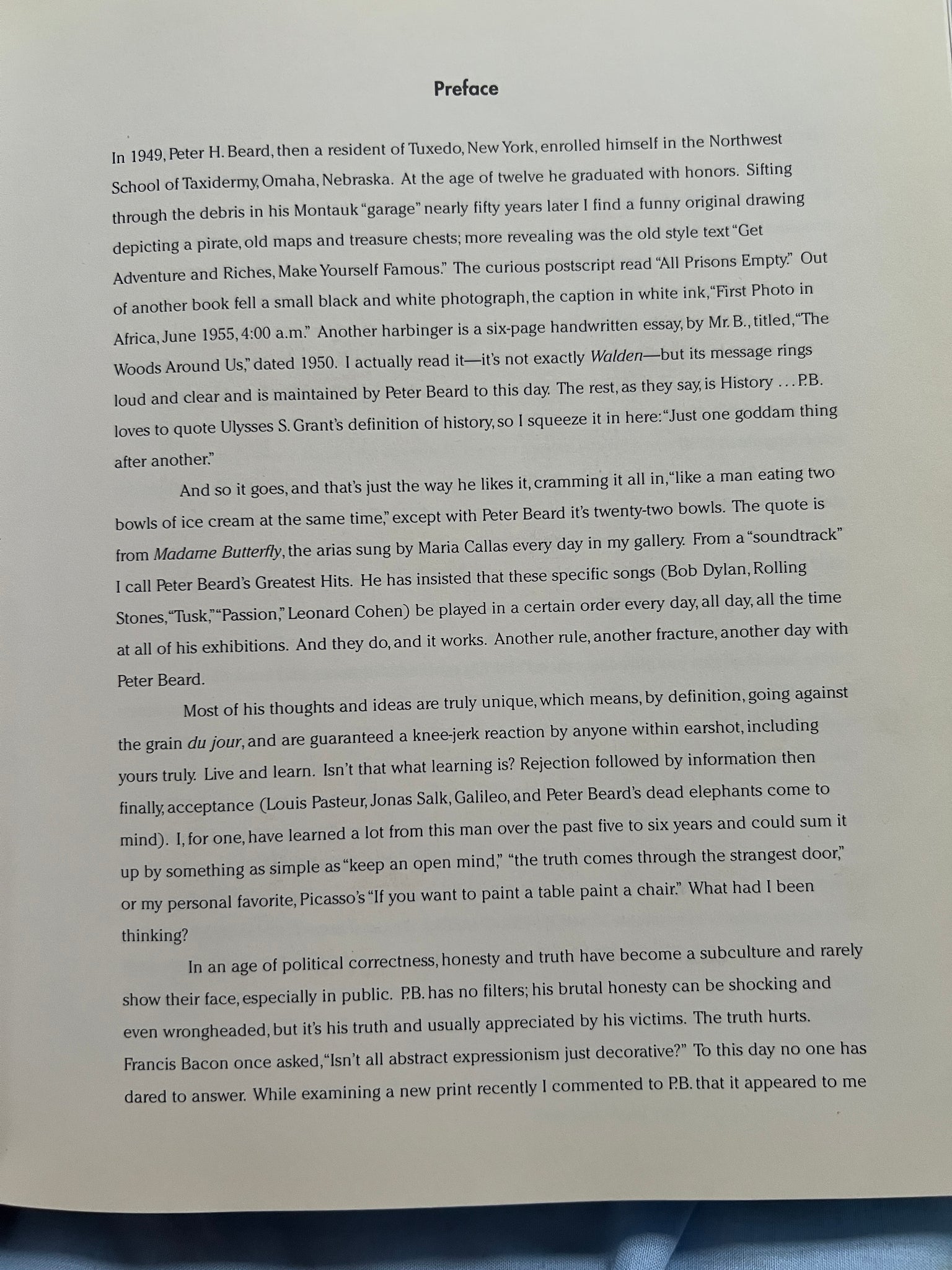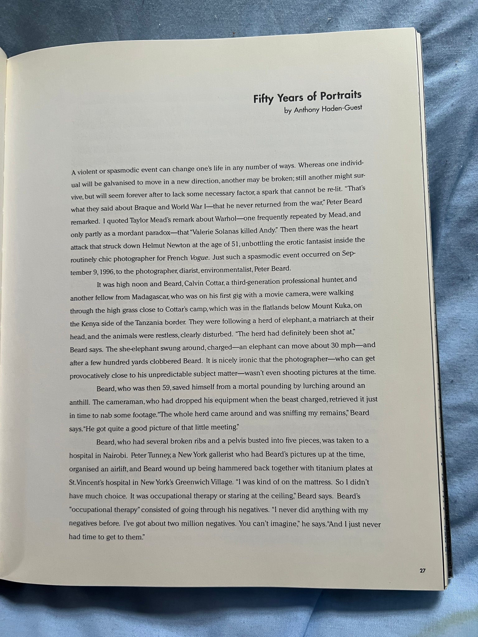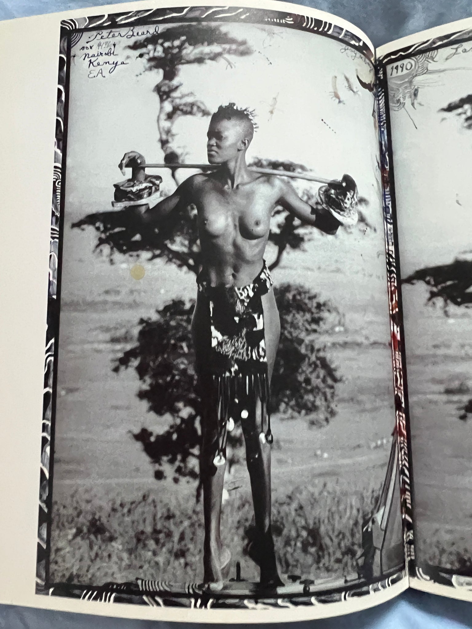 African culture, wild life and landscape all feature. As well as celebrity portraits including his friend Francis Bacon, the Jaggers, Jacqueline Kennedy Onassis, Picasso, Dali and others. Also a fold out of Bacon’s triptych of Peter Beard.