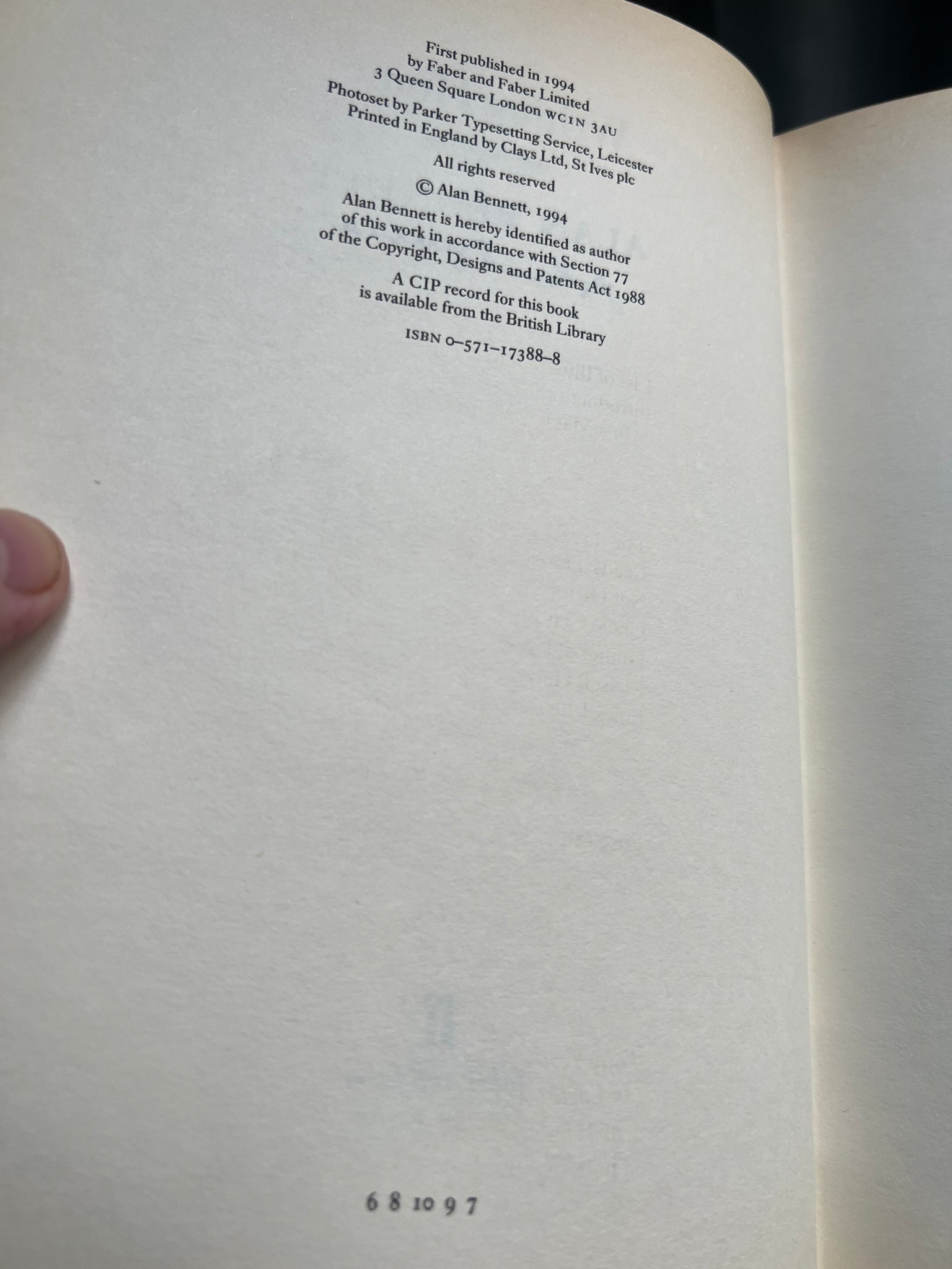 1st Hardback edition sixth impression Faber 1994