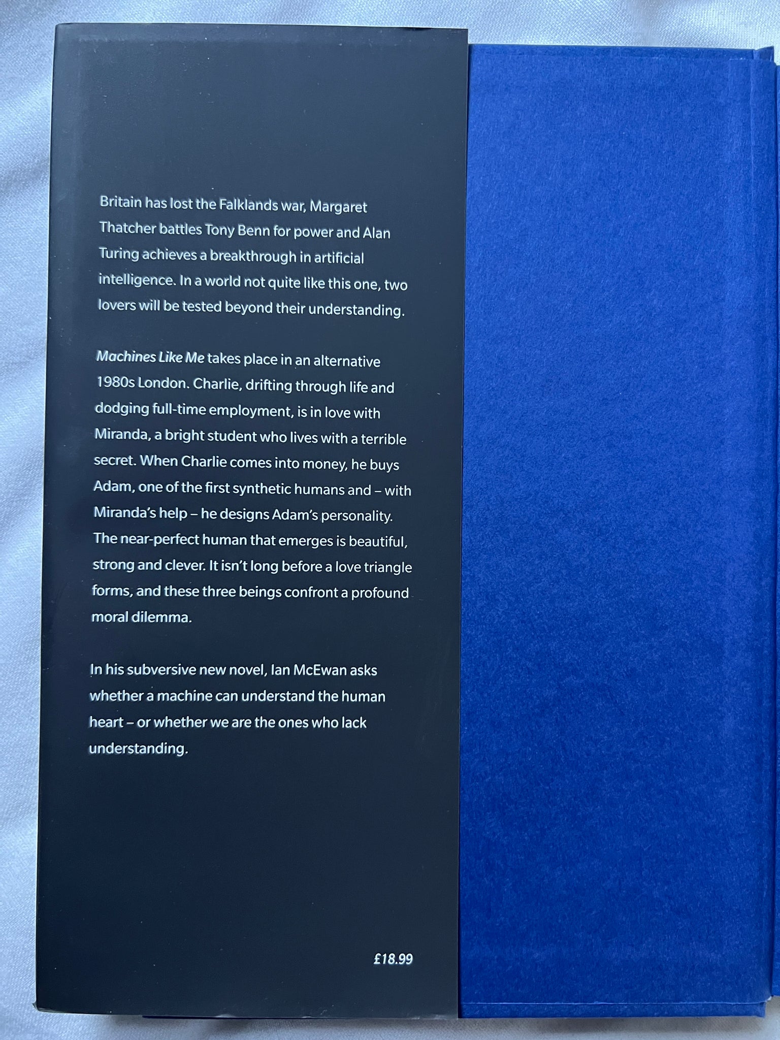 The book takes place in alternative London in the 1980s and concerns the affair between Charlie and Miranda and what happens when Charlie buys a synthetic human.
