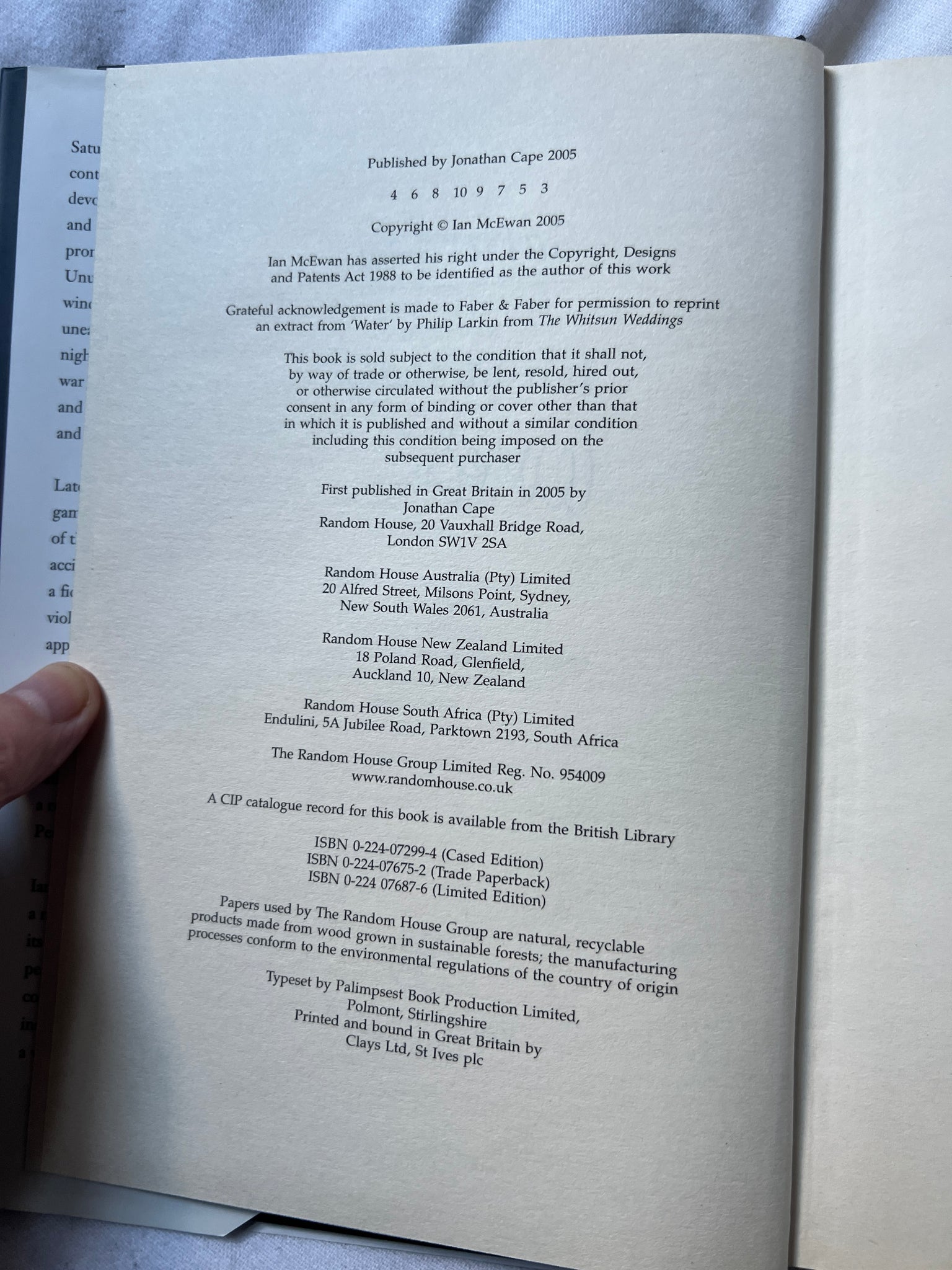 Jonathan Cape London 2005  1st edition 3rd print in price clipped dustjacket. NB